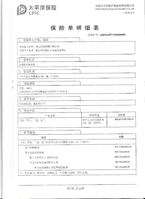 捷通(皆通)機械所生產(chǎn)的溝槽管件在太平洋保險公司進行投保