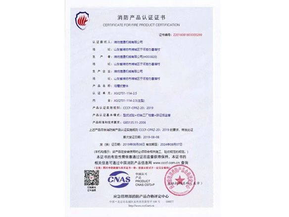 消防產(chǎn)品認(rèn)證證書